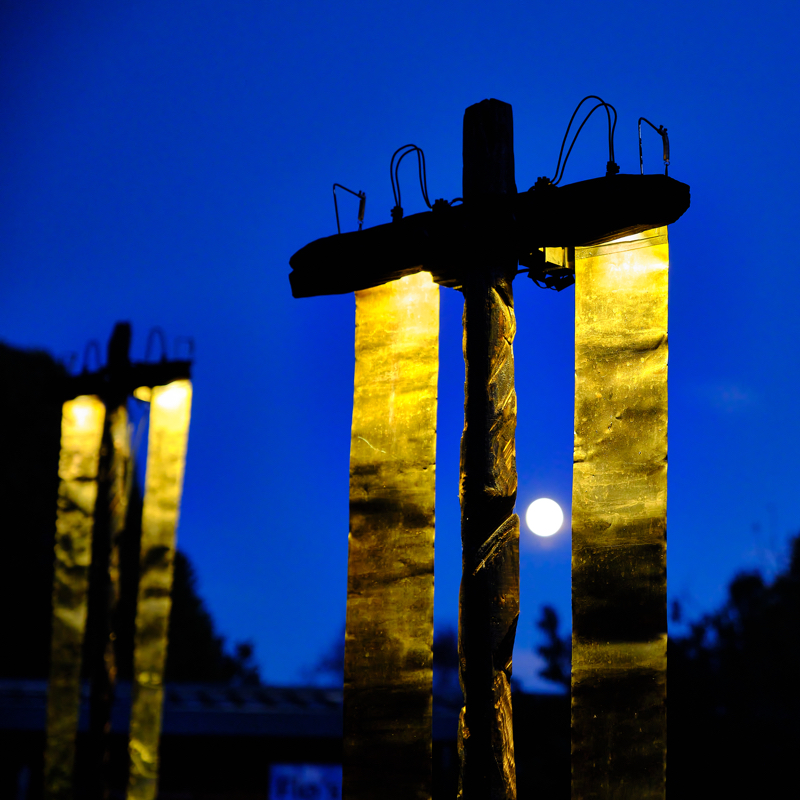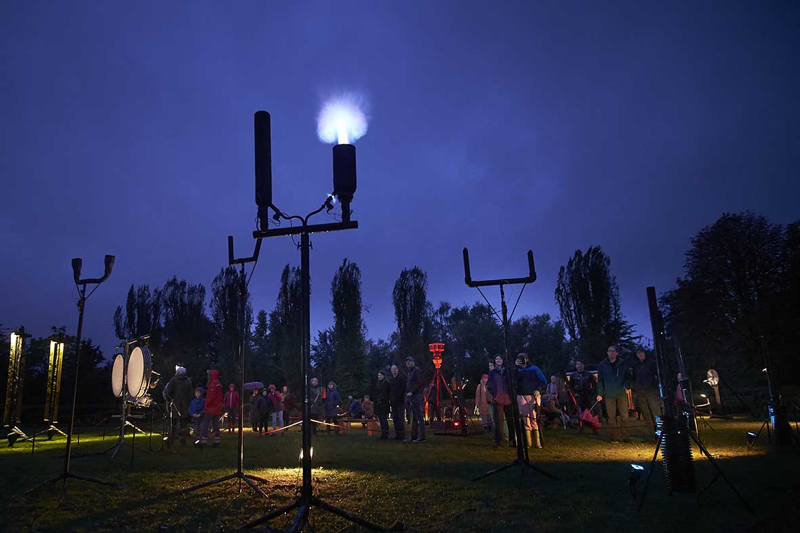 A captivating sound-world that comes alive through an ever-changing outdoor live performance. Using an ensemble of visually striking ‘instruments’ – gongs, bells, whistles and explosive events – Warning Notes gives a voice to the social and ecological alarm rippling across our planet. A hypnotic and playful invitation to contemplate our future together.