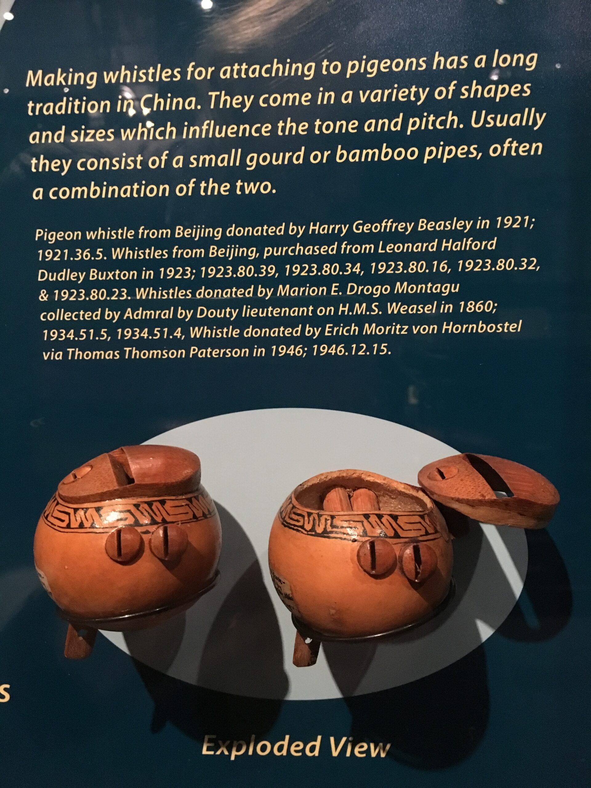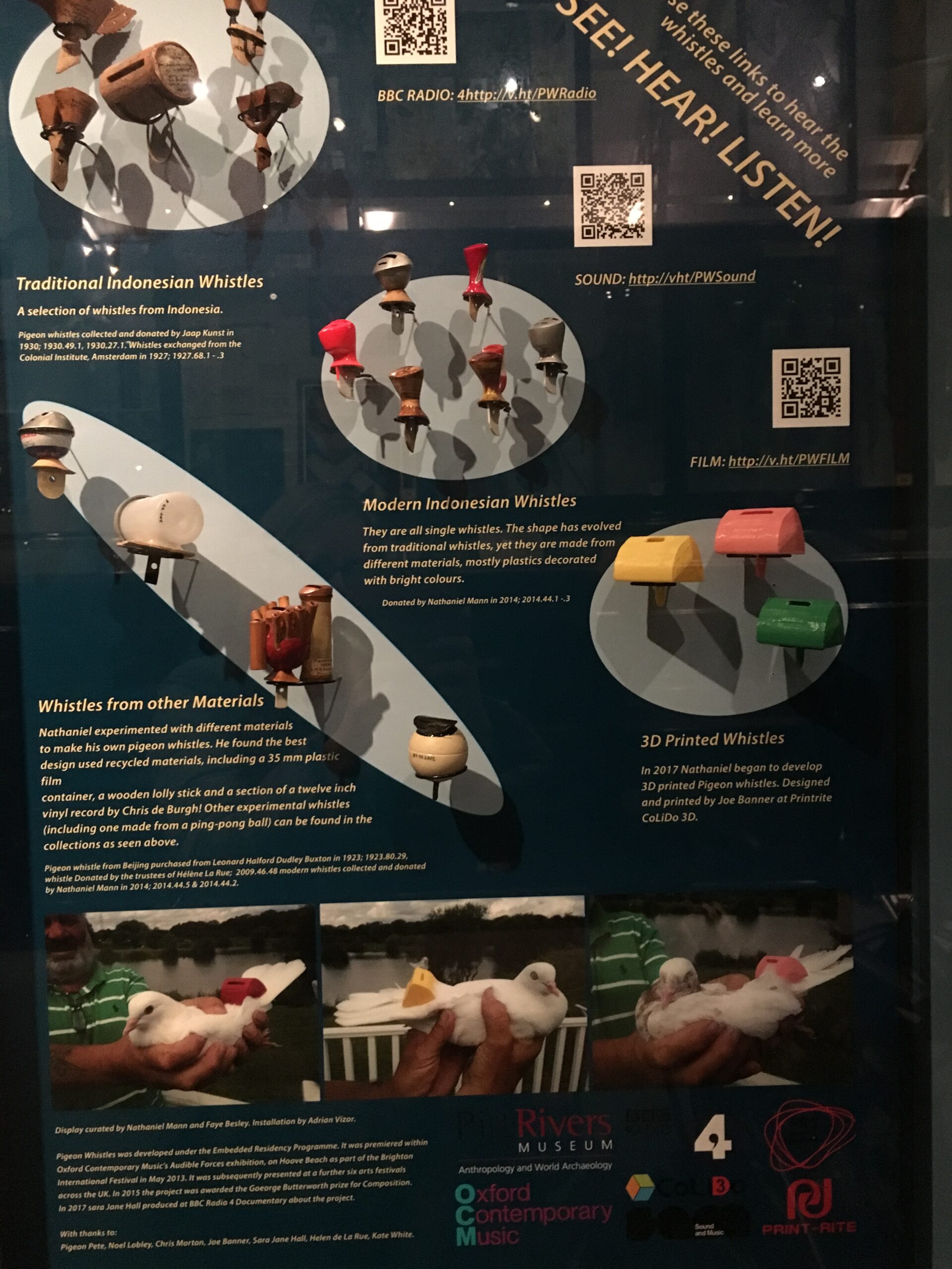 Now this whistle has been added to the Pitt Rivers Museum’s rare collection of pigeon whistles and is on special display. To mark this, Nathaniel and Pete will give an exclusive talk, with words, clips from the documentary, and song about the remarkable pigeon whistles and Pete’s beautiful Birmingham Rollers.